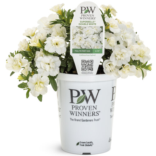 Gardeners have come to love the double rosebud-like blossoms of our Superbells® Double calibrachoa line since its inception. Now, we’re adding an essential color to the series with the fully double-flowered, prolifically blooming, bright white Superbells® Double White. We love how it adds a beautiful lacy texture to recipes. Mix and match it with every other color and its robust, well-branched habit will help to fill out your hanging baskets, upright containers and window boxes fully. New growth quickly covers the spent flowers so no deadheading is needed to keep this plant in color from spring into fall.
