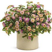 This impressively vigorous, landscape-sized Lantana forms a mounding then trailing mass of dark green foliage dotted with pretty pink and light yellow bicolor blooms all season with minimal seed set. Use it as a groundcover, in a container all its own, or in large containers with other very vigorous plants.