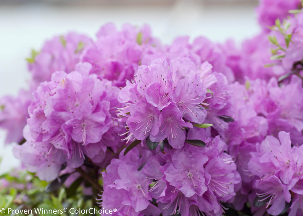 Compact, slow growing evergreen. Abundant lavender-pink spring flowers.